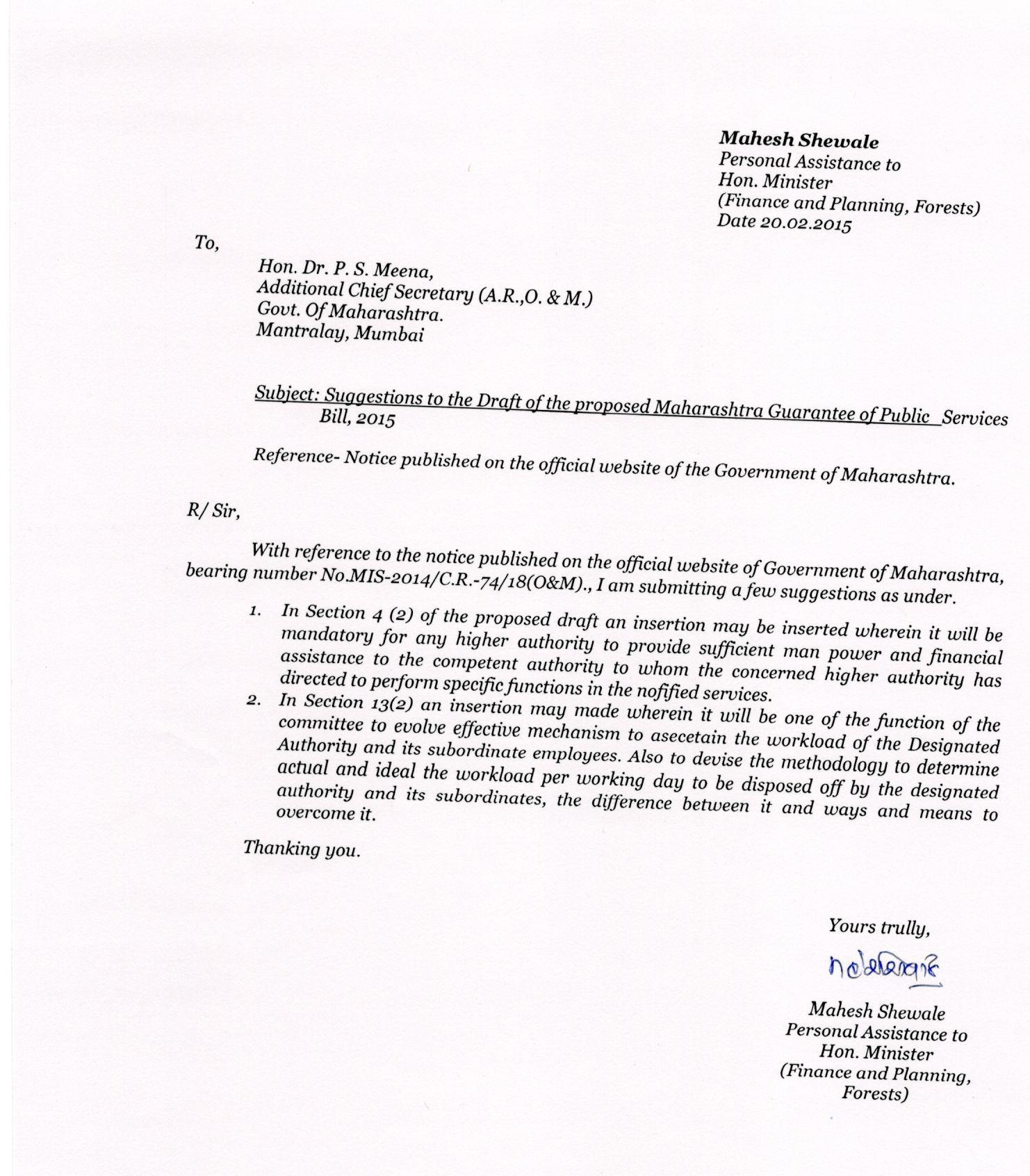 | 123 | suggestion to the draft of the Right to Service Bill. |